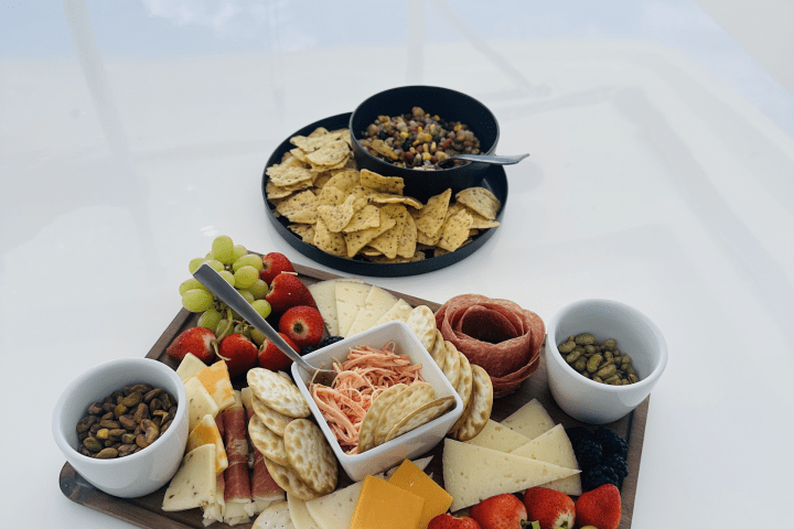 Our all-inclusive private package features a selection of delectable accompaniments, including a charcuterie board, freshly prepared cold cut sandwiches, flavorful pasta salad and bean salad, assorted snacks and fruits, alongside soft drinks, local beers, and tropical rum cocktails all served by your own USCG-certified captain and best vessel crew in the area.
